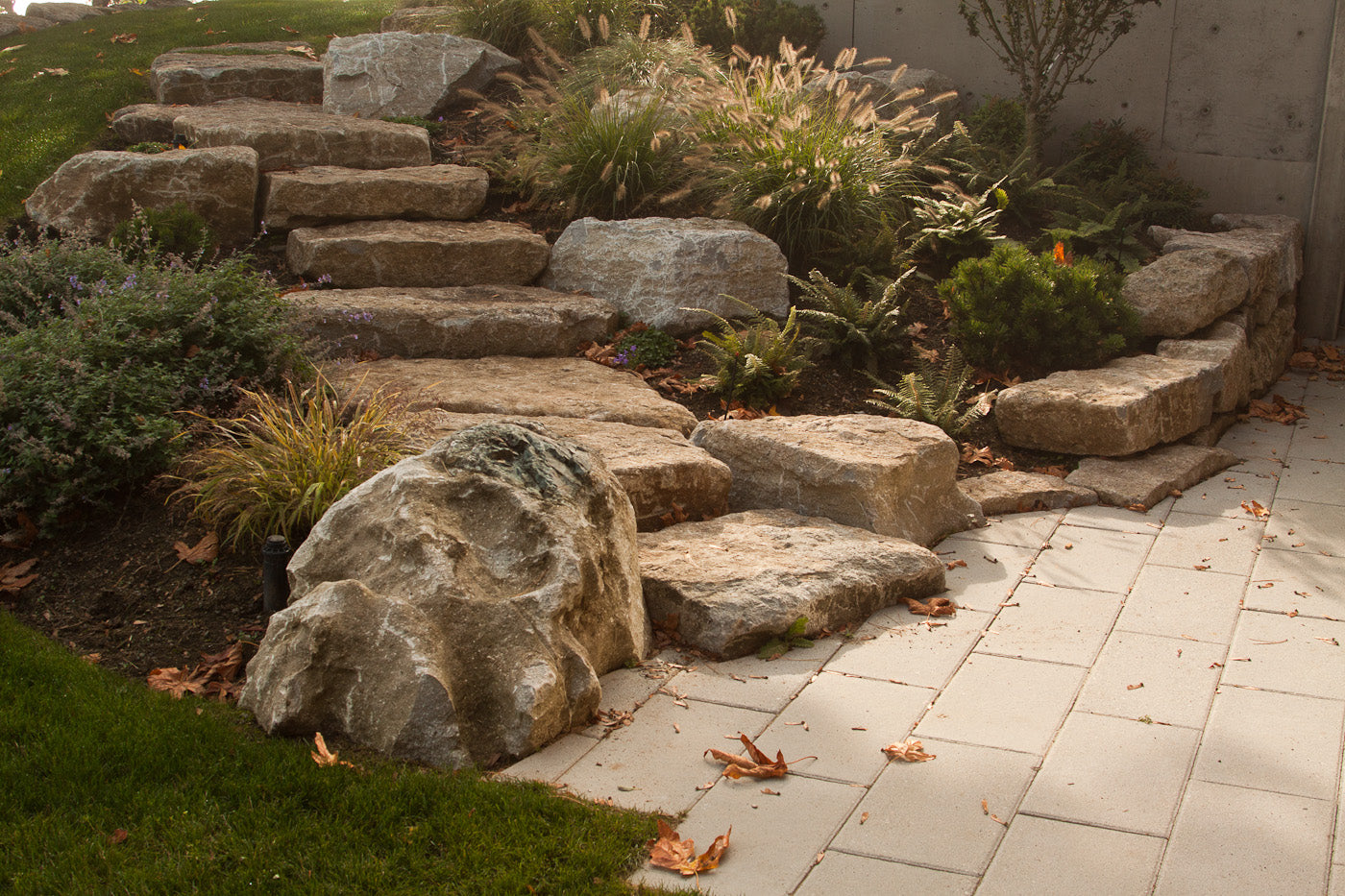 We often accent the edges of patios and walkways with intermittent accent stones—carefully selected for shape, size, and placement. This isn’t something that can be rushed or replicated without experience.