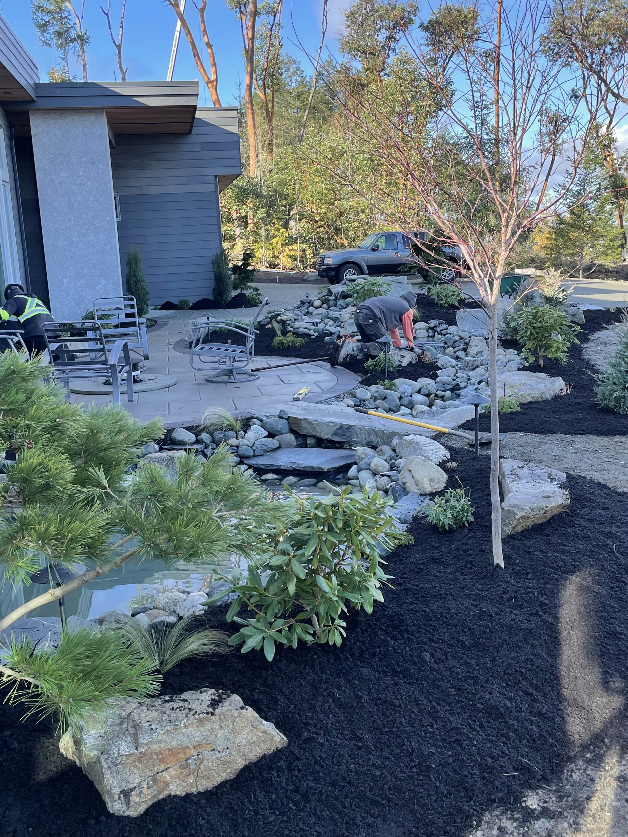 Ideal for sloped properties common around Nanaimo, waterfalls and streams add movement and create a natural focal point within the landscape.